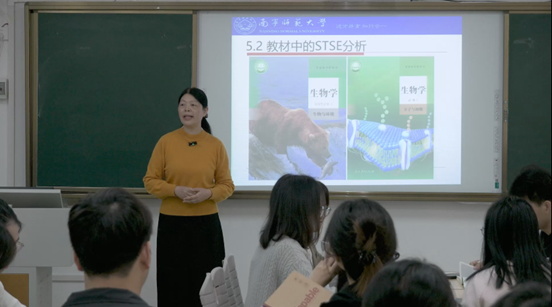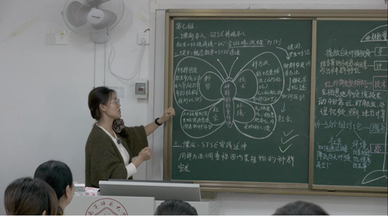 公开课中,何英姿通过引导学生围绕“什么是STSE?什么是STSE教育?”就“STSE教育”展开主题讨论。同学们积极思考,踊跃发言,其中两名同学主动分享了自己的理解,从科学、技术、社会、环境互动的角度阐述了STSE教育的跨学科育人价值。