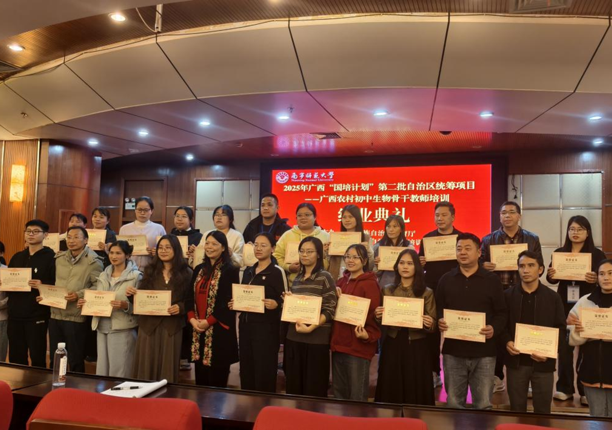 由广西壮族自治区教育厅、广西壮族自治区教师培训中心主办,南宁师范大学环境与生命科学学院承办的广西2025年“国培计划”第二批自治区统筹项目——广西农村初中生物骨干教师培训班于11月20日圆满结束。