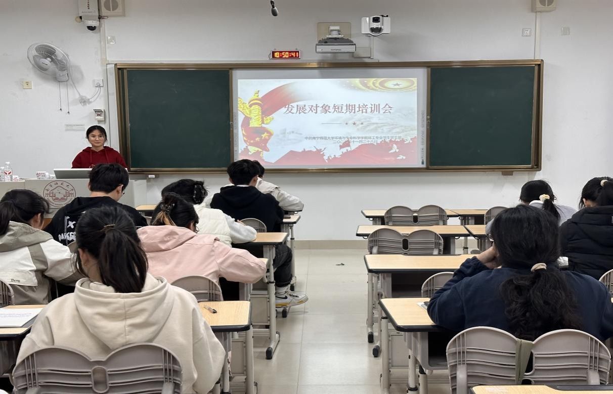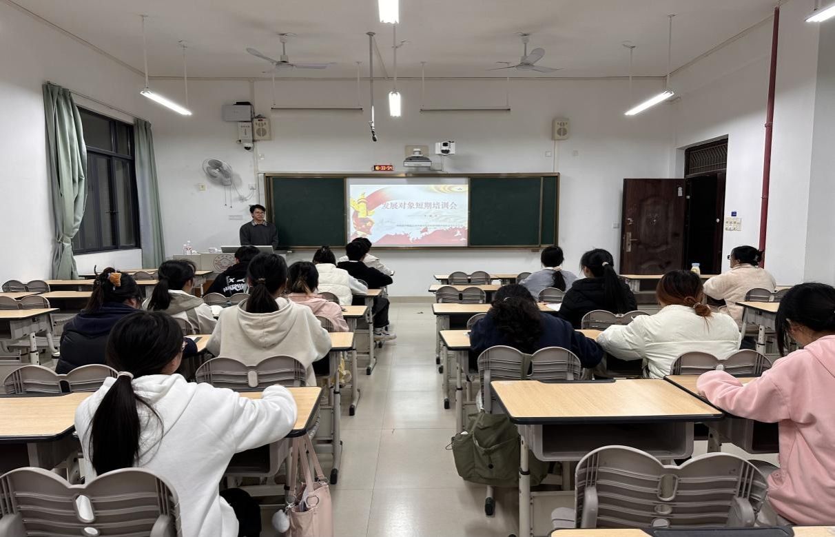 环境与生命科学学院环工、环境专业学生党支部于11月28日在武鸣1号教学楼301教室联合举办发展对象短期培训会,15名学员参加。会议旨在强化理论学习,筑牢理想信念根基。