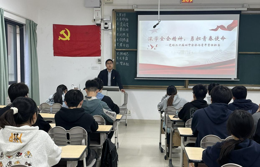 普胤杰同志系统领学了二十届四中全会主要内容,重点解读了“十五五”时期高质量发展、科技自立自强、国家治理体系与治理能力现代化等重大部署。他结合当前发展形势,深入阐释了全会精神对大学生党员成长成才的重要指导意义。