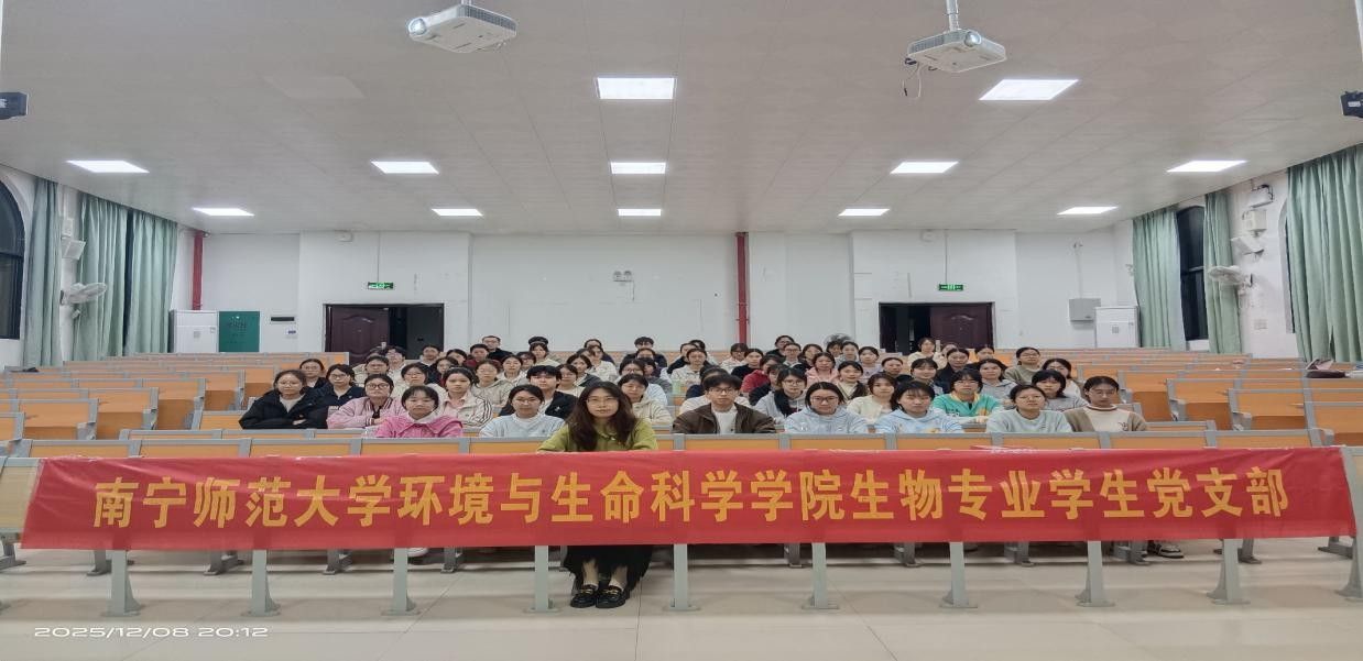 为加强党支部队伍建设,为党组织增添新鲜力量,环境与生命科学学院生物专业学生党支部于2025年12月8日下午在武鸣校区1号教学楼214教室召开预备党员接收会议。本次会议采取线上线下相结合的方式,会议主要议题是讨论黄春婷等27名发展对象接收为预备党员的事宜。会议由党支部书记刘雅楠主持,全体党员及发展对象参与。