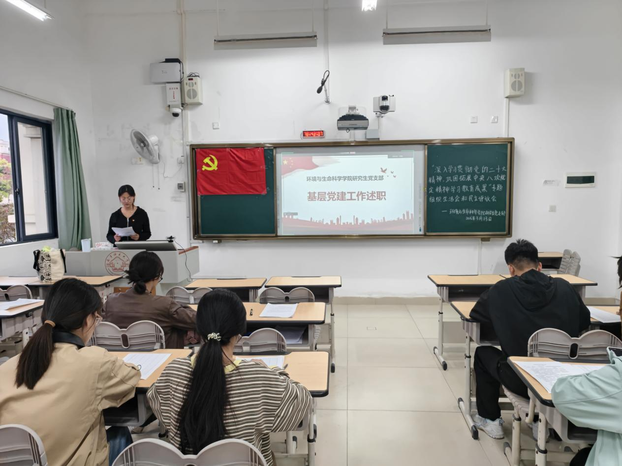 为进一步加强党支部建设,扎实做好学院基层党建工作,强化党员思想政治建设,环境与生命科学学院研究生党支部于2026年3月13日在武鸣校区1号教学楼104教室召开组织生活会。