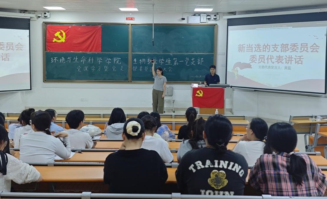 为深入学习贯彻党的二十届四中全会精神,加强基层党组织建设,2026年3月26日,环境与生命科学学院生物专业学生第一党支部在武鸣校区1号教学楼115教室顺利开展“学习贯彻党的二十届四中全会精神”党课暨党支部委员会选举大会。本次会议采取线上线下相结合的方式,由党支部书记骆亮城主持,党支部全体党员参会。