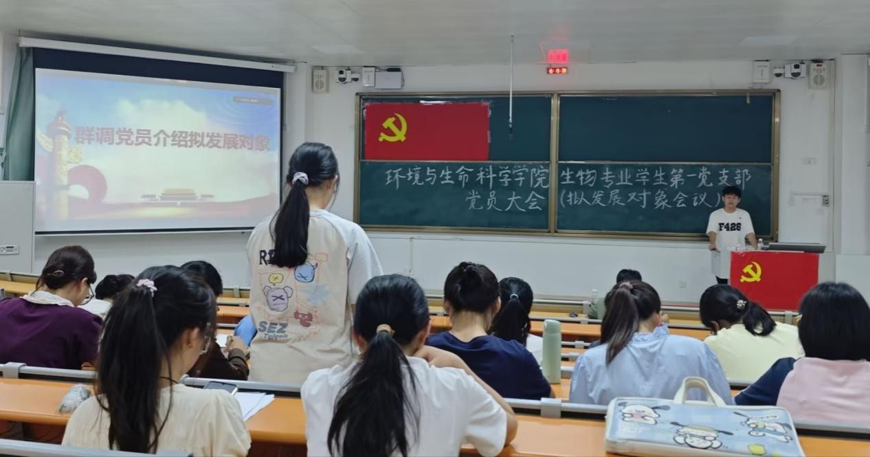 为深入贯彻落实党员发展工作有关要求,切实保障发展质量,2026年4月15日,环境与生命科学学院生物专业学生第一党支部在武鸣校区2号教学楼109教室组织召开讨论确定发展对象党员大会。会议采用线上线下相结合的方式进行,由党支部宣传委员孙涛同志主持,党支部全体党员出席会议。
