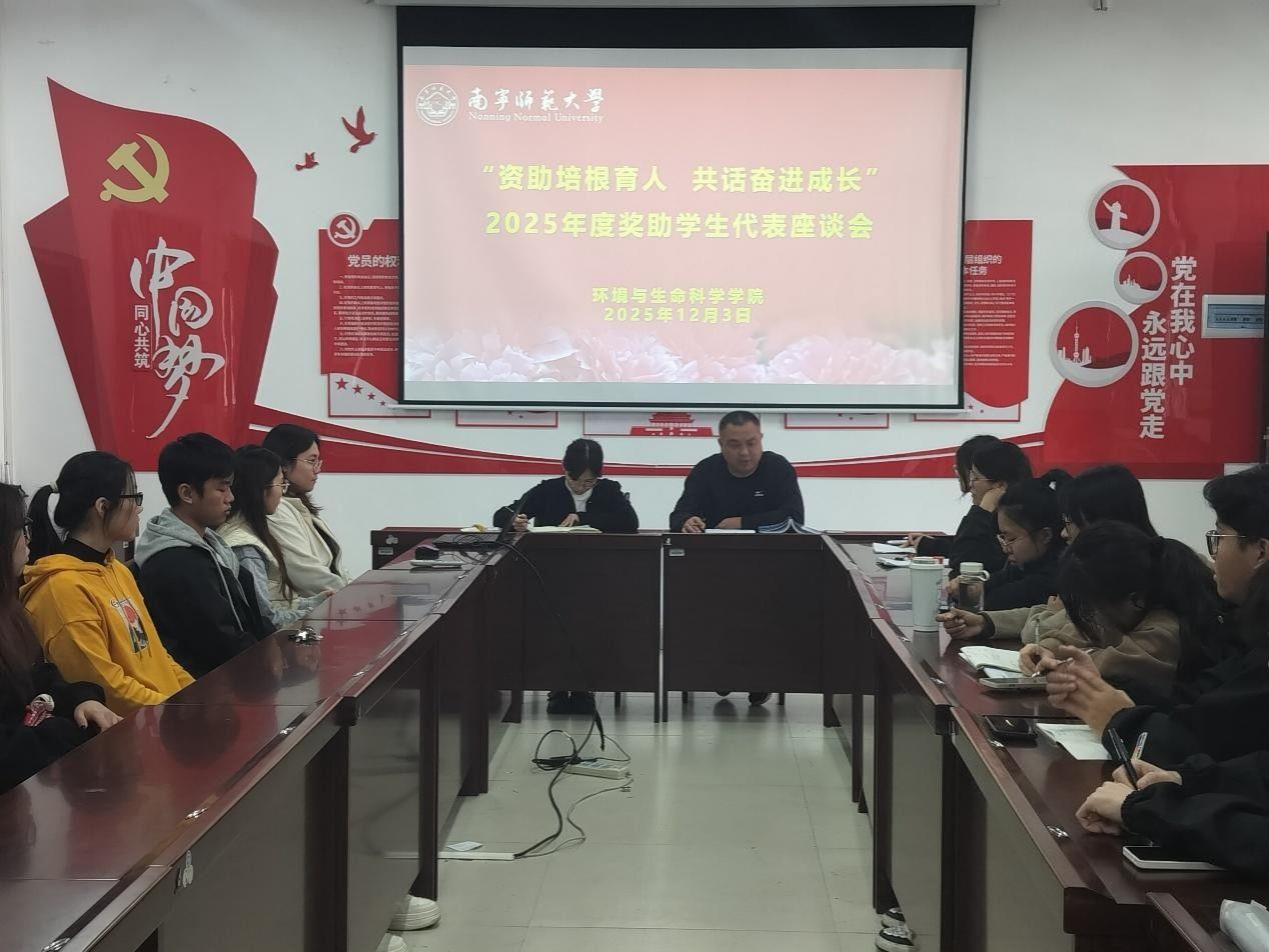 为深入落实国家奖助政策,搭建学院资助沟通平台,12月3日中午,环境与生命科学学院2025年度奖助学生代表座谈会在地海楼B508会议室顺利召开。参与本次会议的有学院党委副书记刘启满、辅导员龚炜婷以及各班受奖助学金的学生代表。