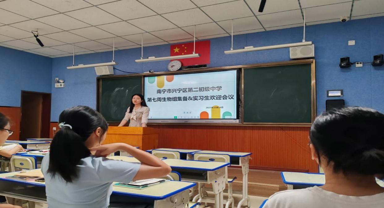 2025年10月13日上午,在赵志娟老师的带领下,南宁师范大学环境与生命科学学院2023级生物科学专业的10名本科生抵达南宁市兴宁区第二初级中学,开展为期一个月的教育实习。