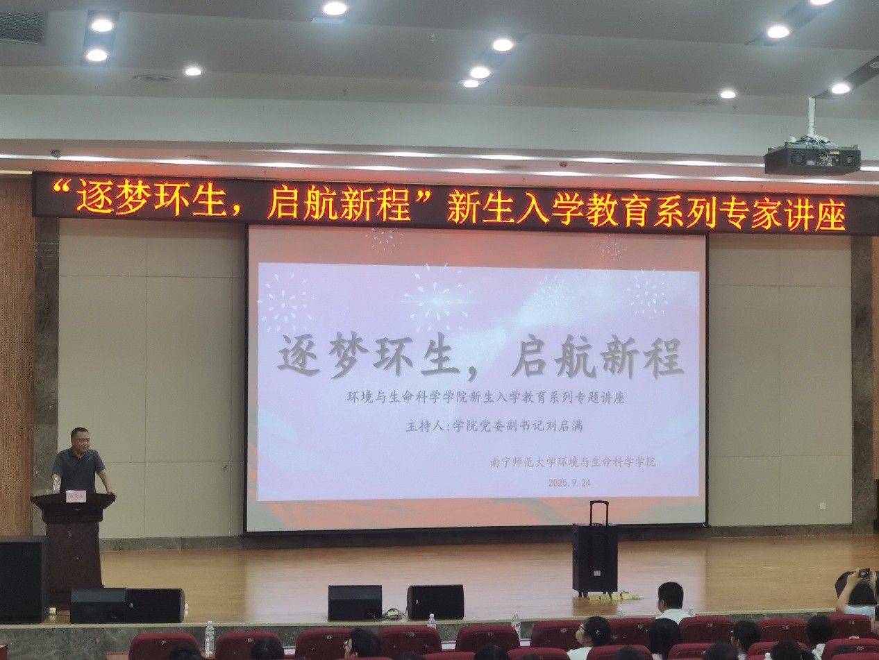 为帮助2025级新生科学规划学业生涯、明确发展方向,同时为在读老生答疑解惑、指点迷津,9月24日,环境与生命科学学院在武鸣校区图书馆一楼报告厅举办“逐梦环生,启航新程”新生入学教育专题讲座。本次活动由学院党委副书记刘启满主持,特邀优秀毕业生校友张荣海返校,以亲身经历为师生分享成长故事与职业感悟。