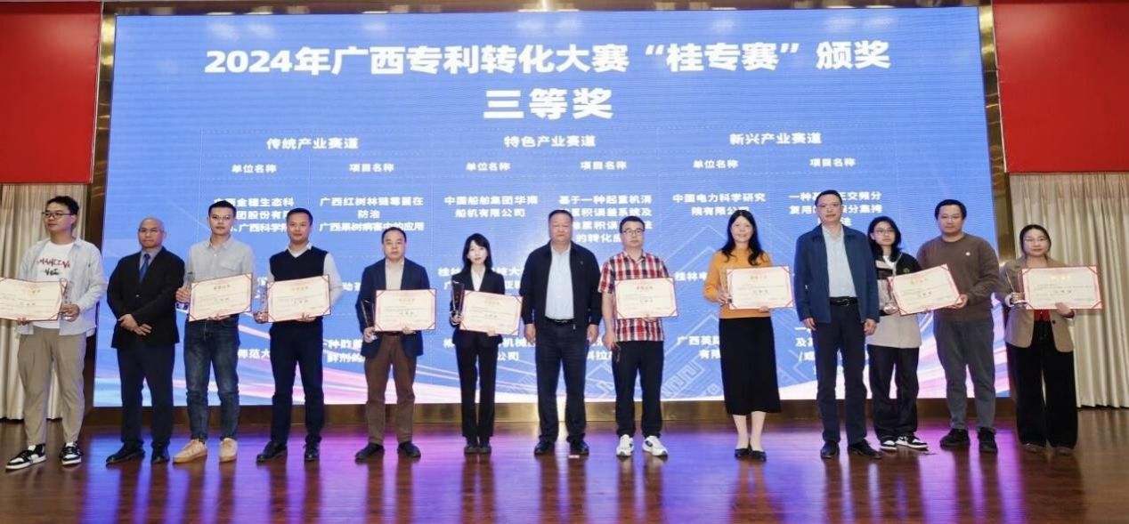 11月14日下午,2024年广西专利转化大赛(简称 “桂专赛”)颁奖典礼暨专利转化运用专题活动在南宁隆重举行。本次活动以 “智汇八桂·创领未来—加速专利转化,赋能高质量发展” 为主题,搭建起专利创新与产业转化的高效对接平台,为广西新质生产力发展注入强劲动能。