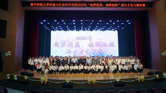 2025年11月16日晚,环境与生命科学学院在武鸣校区音舞楼千人演播厅成功举办2025年“筑梦新篇,扬帆起航”新生才艺大赛,这场充满活力、创意与梦想的青春盛宴,吹响了新生筑梦未来的号角。出席本次活动的有校团委副书记何俊斌,学院党委书记韦东林、院长何英姿、党委副书记刘启满等领导,以及教师代表、辅导员代表和各学院特邀嘉宾。
